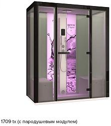 ИК сауна уже оснащена цельностеклянной дверью, цветотерапией, музыкальной системой (MP3, CD).