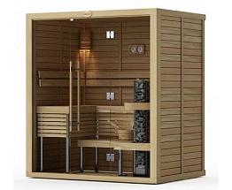 Вместительная инфракрасная комнатная сауна в классическом стиле. Стеклокерамические нагреватели.