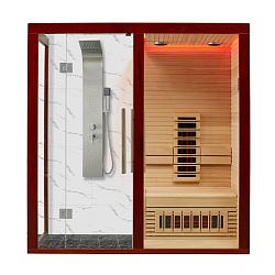 Оригинальная форма, стиль и высококачественный массив дерева - красный кедр, соединились в единый аккорд в инфракрасной сауне Koy R05-K1. Это уголок здоровья и водного наслаждения прямо у Вас дома! Не отказывайте себе в радостях во время водных процедурах. Конструкция душевой невероятно прочная для долгой эксплуатации.