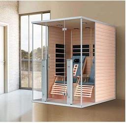 Инфракрасная сауна данной модели закругленной формы из закаленного стекла и красного канадского кедра смотрится шикарно и разместить ее можно даже в небольшой квартире.