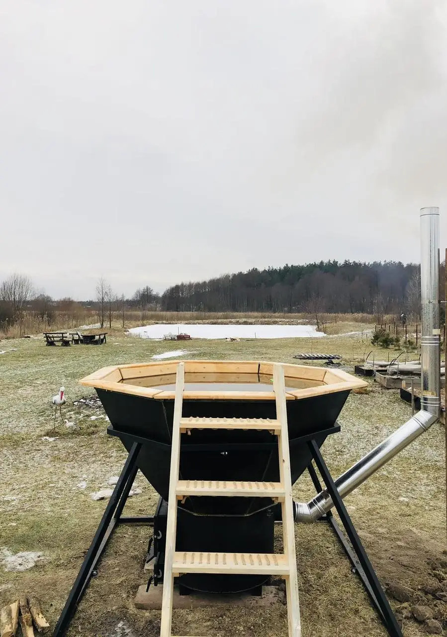 - Конструктив лестницы: Хотите добавить больше комфорта? Лестницу можно дополнить удобной площадкой, чтобы вам было удобнее заходить в чан и выходить из него.