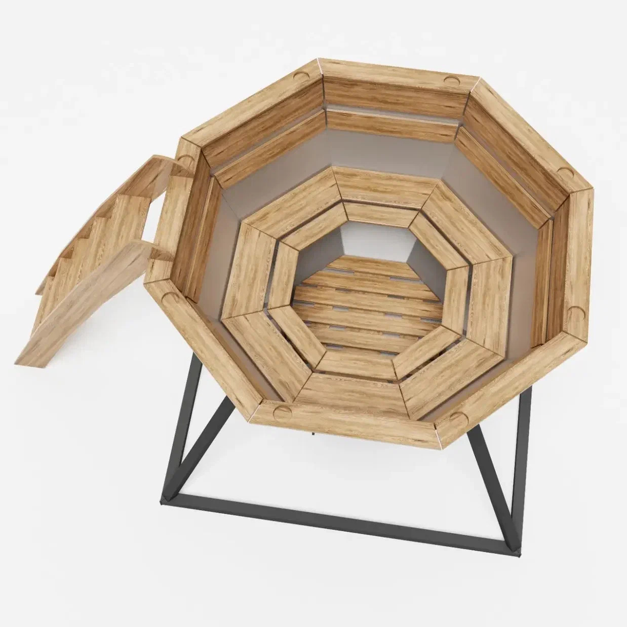 - Конструктив лестницы: Хотите добавить больше комфорта? Лестницу можно дополнить удобной площадкой, чтобы вам было удобнее заходить в чан и выходить из него.