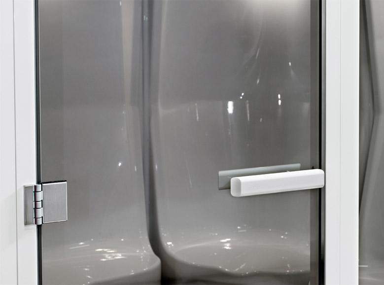 Кабина изготовлена из высокотехнологичной пластмассы вакуумного литья, которая используется для лучших паронепроницаемых конструкций. Поставляется с готовыми к установке стенами и потолком, а также встроенными сиденьями, над каждым из которых предусмотрено встроенное освещение, создающее приятную атмосферу. Дверь паровой выполнена из надежного и безопасного закаленного стекла, изящно тонированного, в прочной раме с ручками из анодированного алюминия.