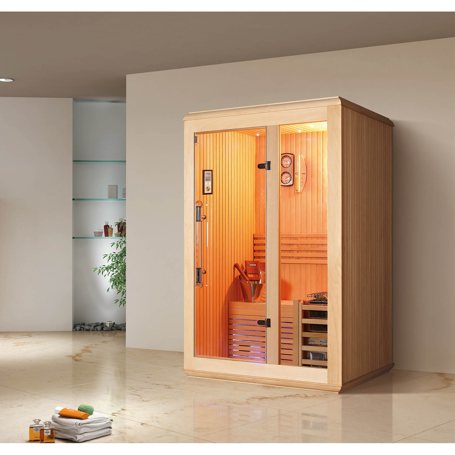 Компания Mexda предлагает на выбор клиентам различные многофункциональные системы управления и настройки сауны. Большинство саун оснащены Bluetooth, USB или FM. Кроме того, с помощью системы также можно регулировать температуру, цвет светодиодной лампы и время.
