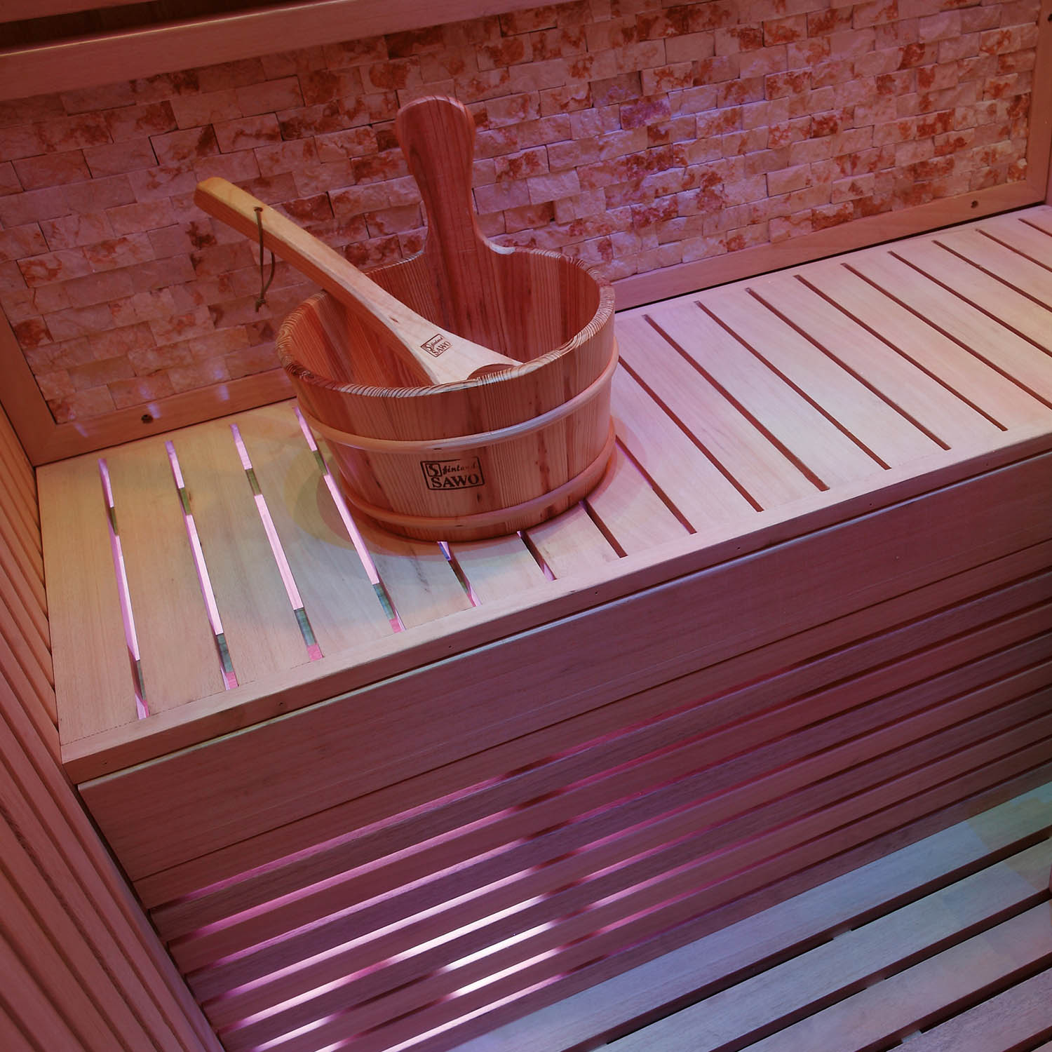 Высококачественные сауны производятся только из высококачественной древесины. Натуральное дерево, используемое в производстве сауны, импортируется из-за границы. Это древесина высшего сорта, которая проходит строгий отбор по цвету, сучкам, линиям и т. д.