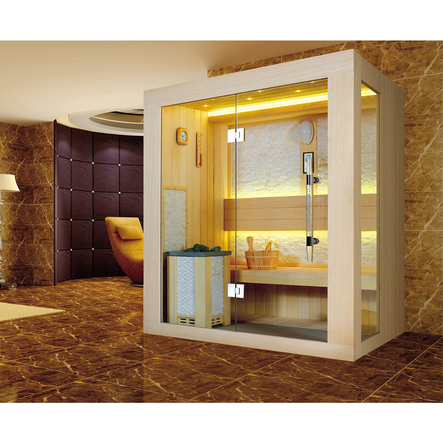 Компания Mexda предлагает на выбор клиентам различные многофункциональные системы управления и настройки сауны. Большинство саун оснащены Bluetooth, USB или FM. Кроме того, с помощью системы также можно регулировать температуру, цвет светодиодной лампы и время.