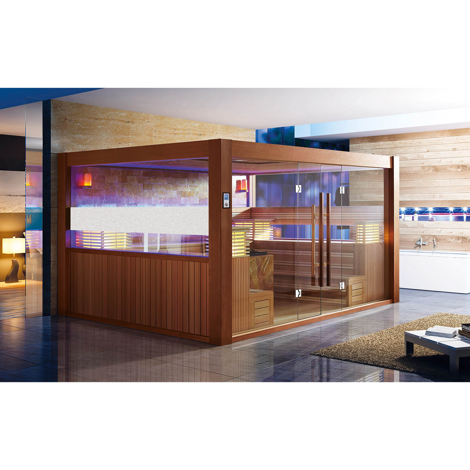 Компания Mexda предлагает на выбор клиентам различные многофункциональные системы управления и настройки сауны. Большинство саун оснащены Bluetooth, USB или FM. Кроме того, с помощью системы также можно регулировать температуру, цвет светодиодной лампы и время.