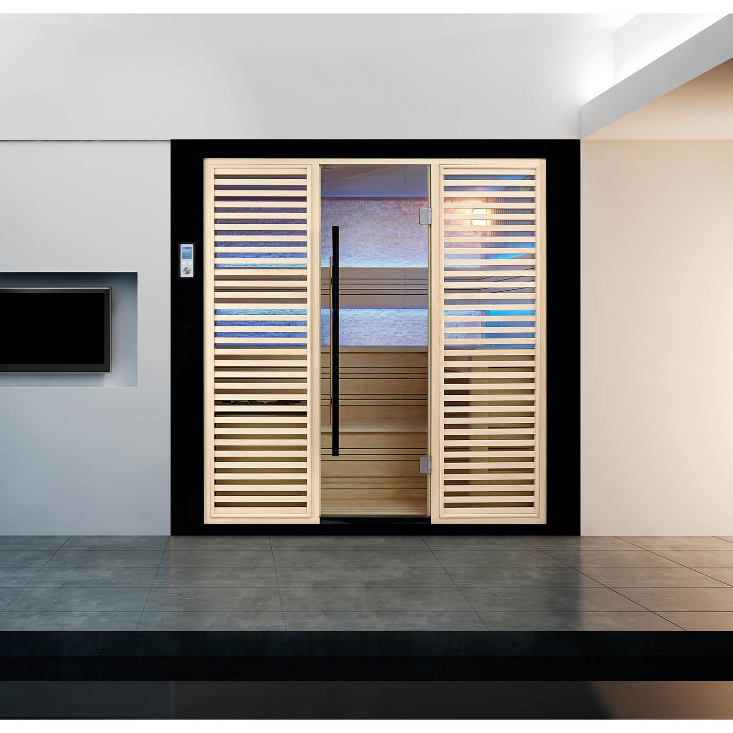 Компания Mexda предлагает на выбор клиентам различные многофункциональные системы управления и настройки сауны. Большинство саун оснащены Bluetooth, USB или FM. Кроме того, с помощью системы также можно регулировать температуру, цвет светодиодной лампы и время.