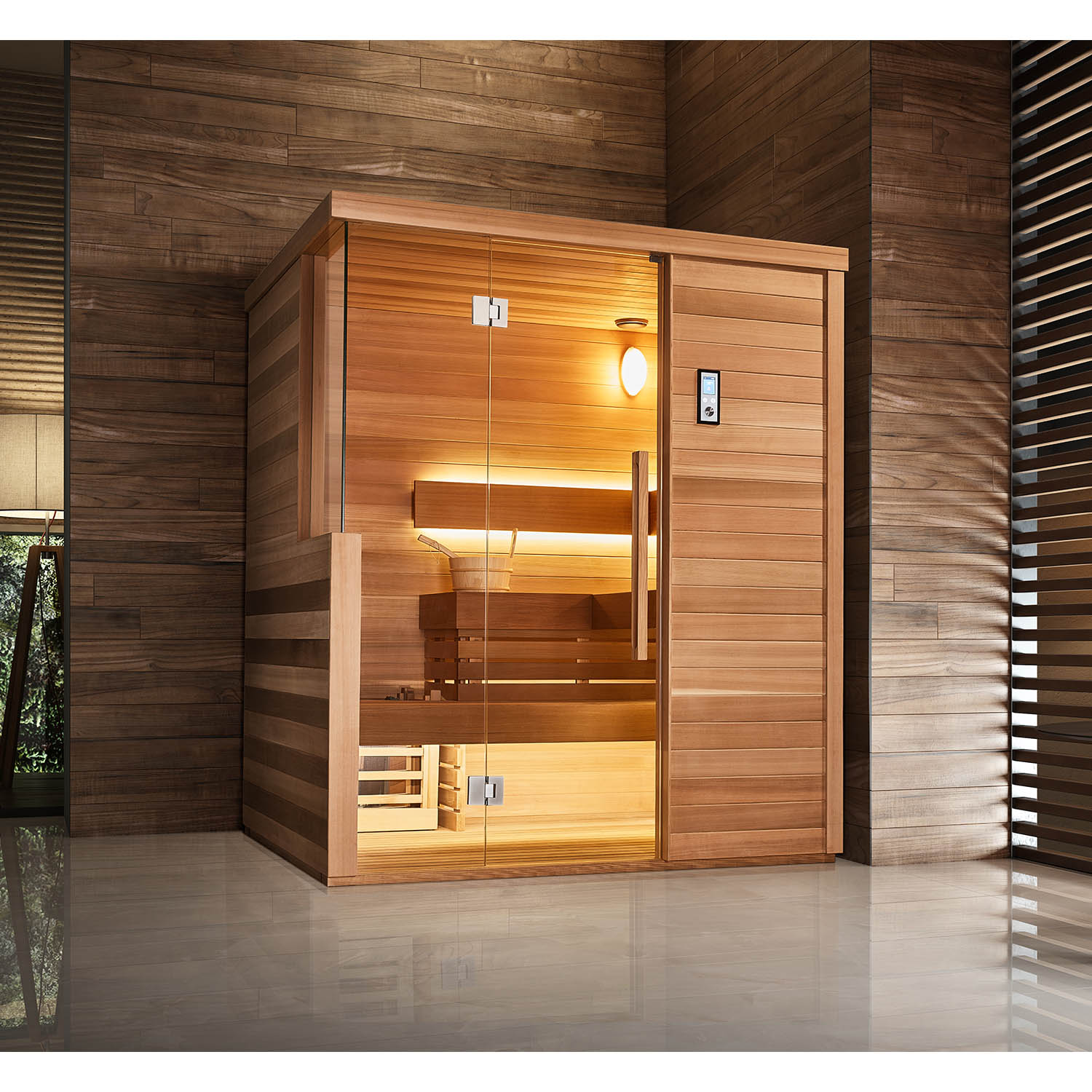 Высококачественные сауны производятся только из высококачественной древесины. Натуральное дерево, используемое в производстве сауны, импортируется из-за границы. Это древесина высшего сорта, которая проходит строгий отбор по цвету, сучкам, линиям и т. д.
