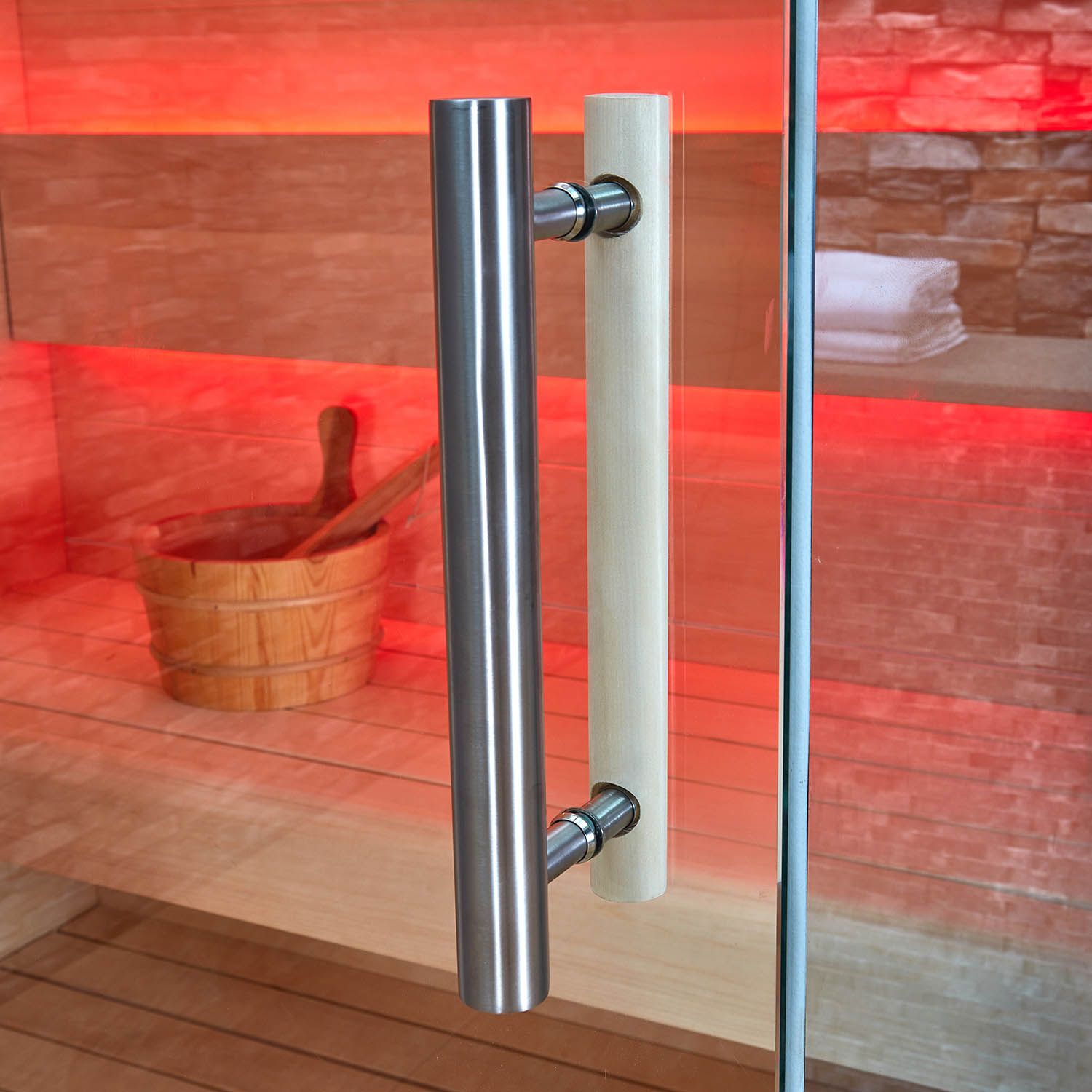 Внутри сауны используется светодиодное освещение. Цвет можно изменить на красный, зеленый, синий и градиент.