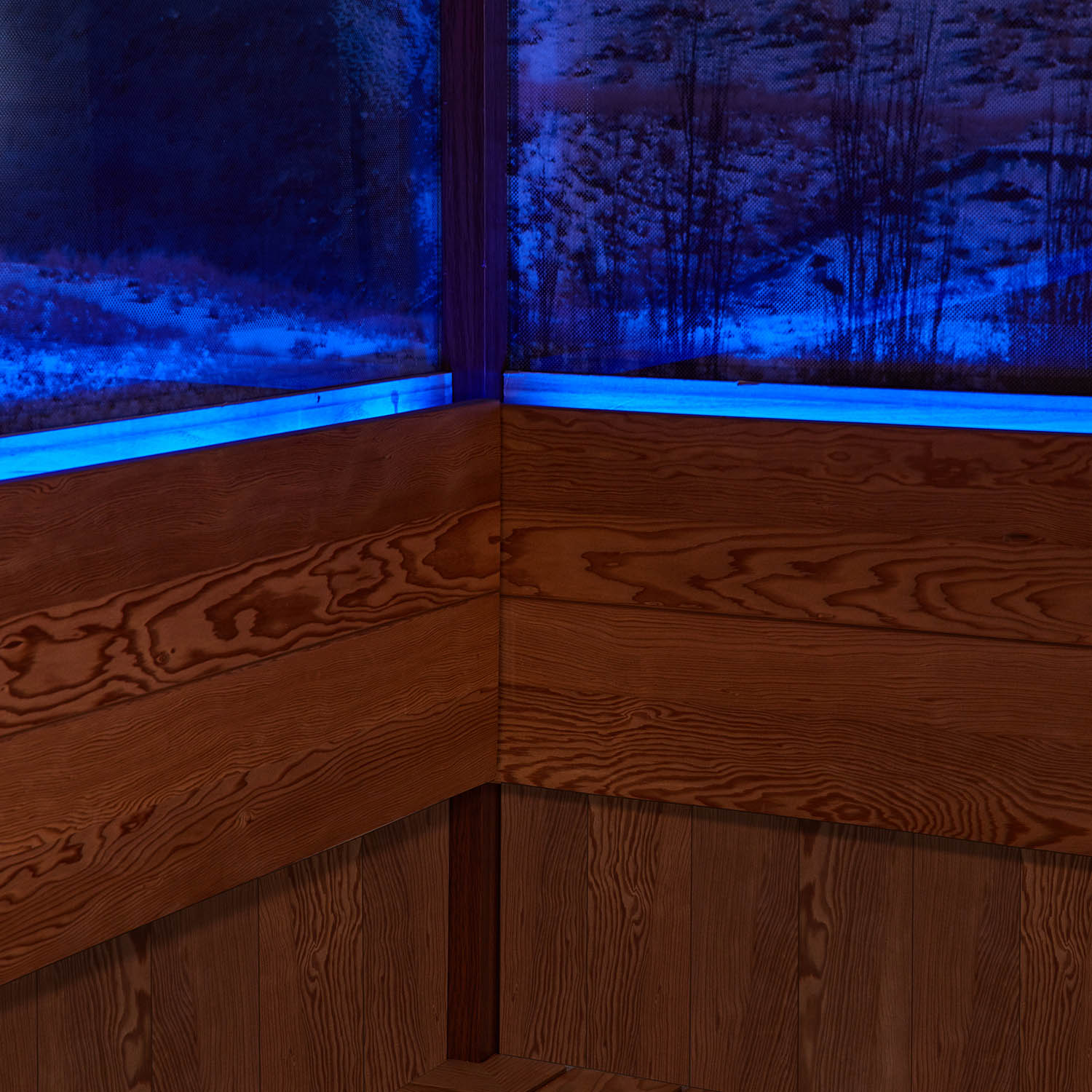 Внутри сауны используется светодиодное освещение. Цвет можно изменить на красный, зеленый, синий и градиент.