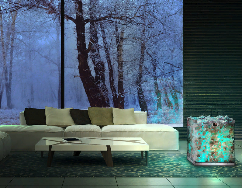 Гималайская соль, нагретая инфракрасным излучением, насыщает окружающий воздух, освобождая его от вредных частиц и высвобождая природные микроэлементы, содержащиеся в гималайской соли. Куб можно установить в любом помещении в качестве дополнительной отопительной системы , которая очищает и ионизирует воздух, не потребляет кислород, дезинфицирует, расслабляет. HIMALAYA CLIMA CUBE способен обогреть комнату до 25 кв.м. Потребление электроэнергии управляется сложной электроникой, которая повышает энергоэффективность, оптимизируя затраты электроэнергии, и контролирует мощность нагрева. Управление настройками температуры осуществляется с дисплея, расположенного на корпусе, там же отображаются текущие параметры.