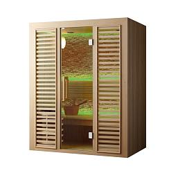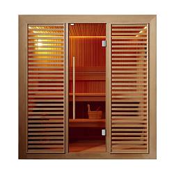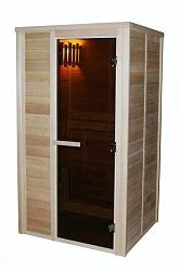 Данная модель финской сауны имеет средние габариты и достаточно простора внутри кабины для комфортабельного отдыха и возможности установить сауну у себя в доме или загородном коттедже. Материал, используемый при изготовлении этой финской сауны - качественная канадская древесина. Безопасная и надежная в эксплуатации.