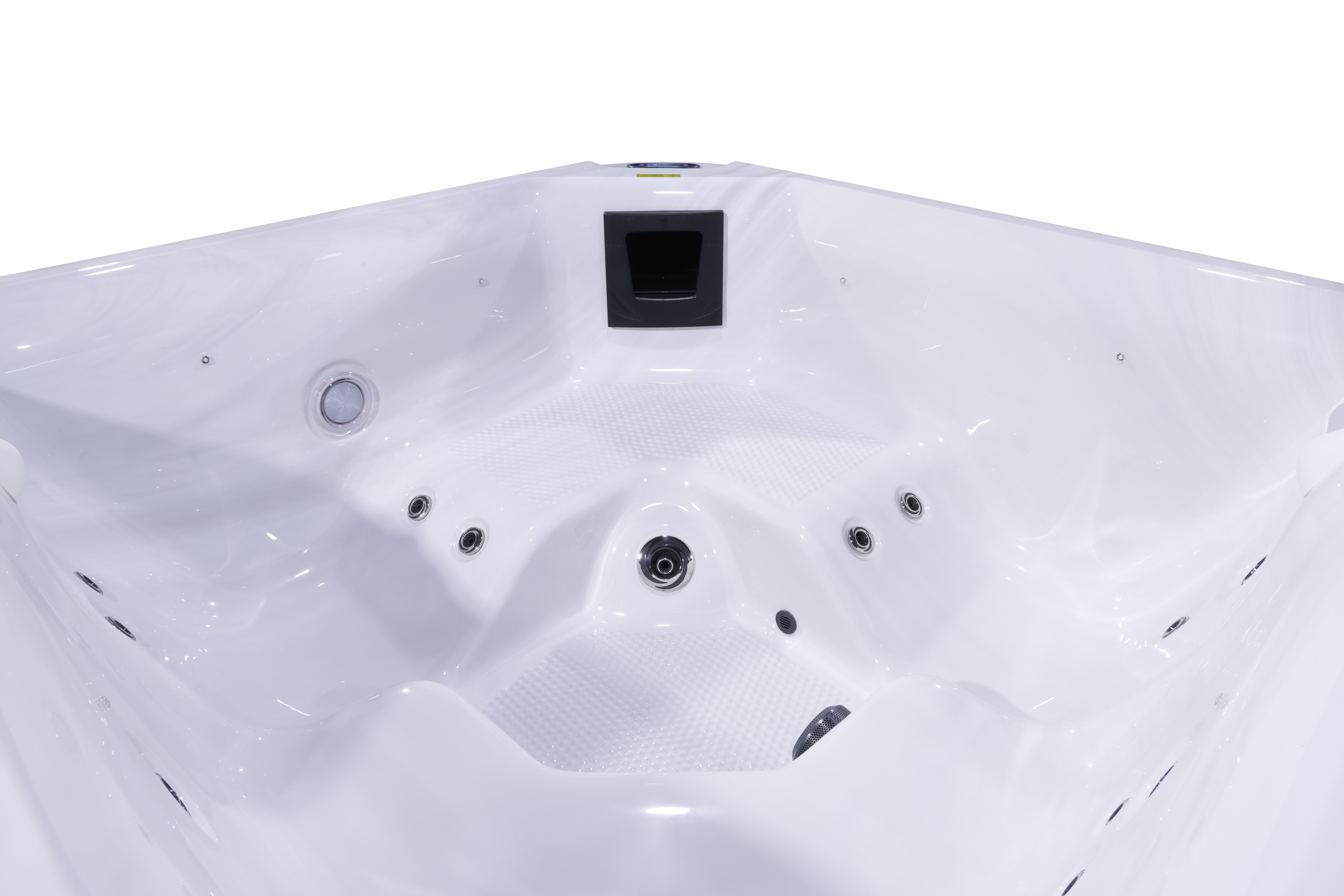 Благодаря нагревателю 2 кВт и двухскоростному водяному насосу 1,5 кВт, Khel быстро достигает рабочей температуры и обеспечивает эффективный массаж, оставаясь экономичным в эксплуатации.