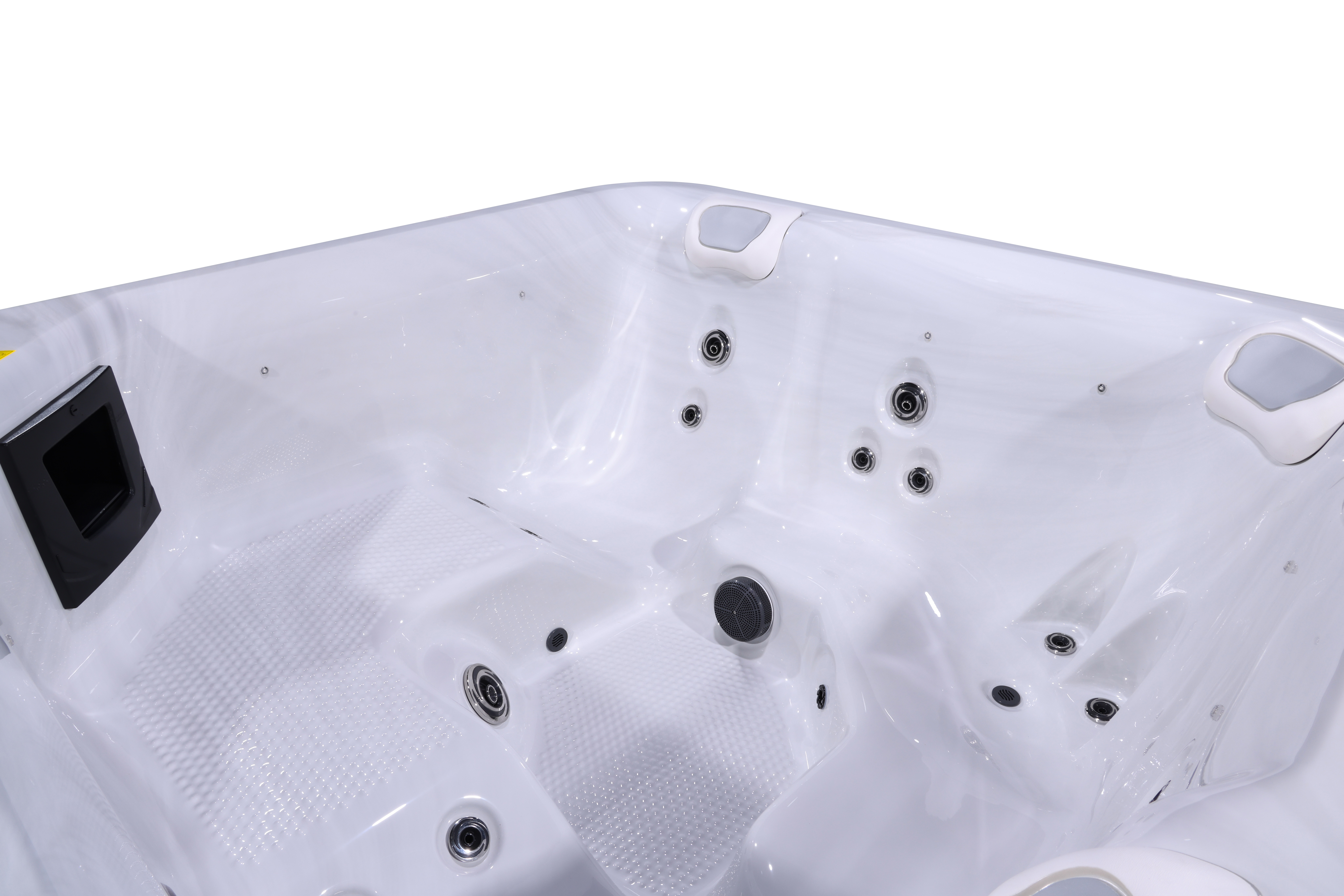 Khel предлагает продуманную систему массажа с 16 воздушно-водяными форсунками, которые обеспечивают эффективное расслабление ключевых групп мышц. Эргономичная конструкция с тремя подголовниками создает комфортные условия для отдыха компании до пяти человек.