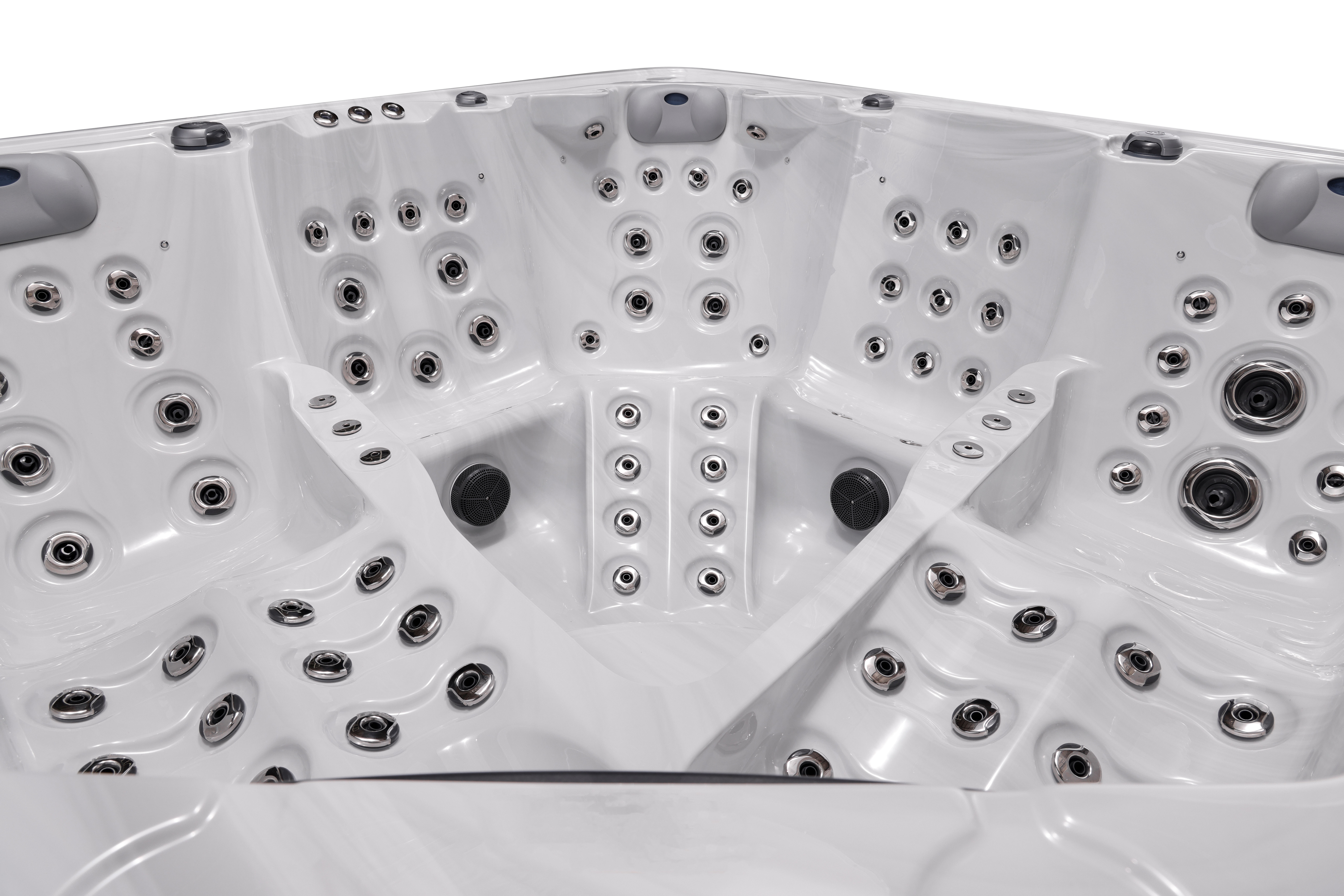 NordicSpa Tyur с размером чаши 2,25 x 2,25 м идеально подходит для установки как в помещении, так и на улице. Просторная квадратная чаша с тремя эргономичными подголовниками комфортно вмещает до пяти человек, создавая королевские условия для полноценного отдыха и общения.