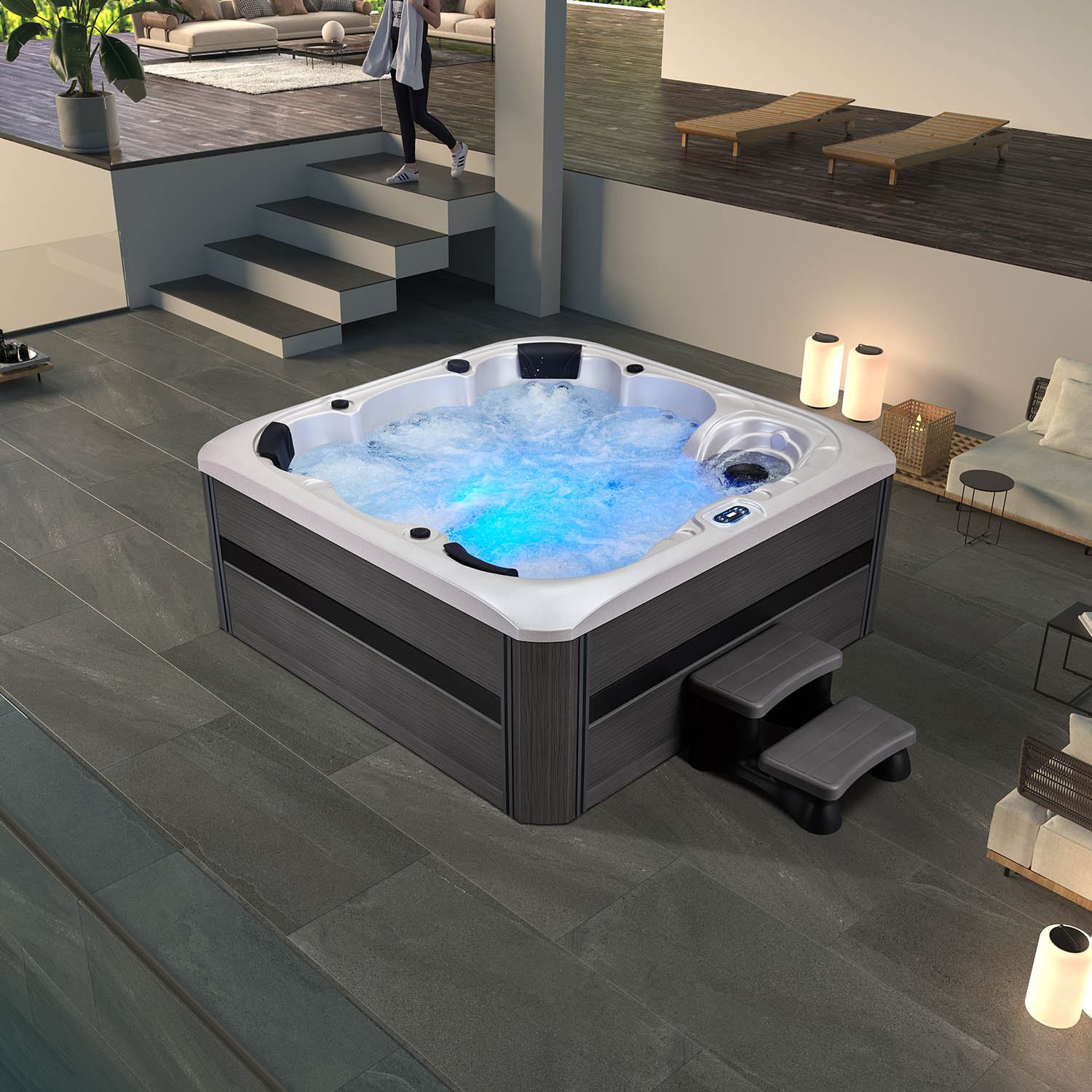 Модель гидромассажного бассейна WS-692H украсит ваш усадебный участок, а так же будет доставлять радость и расслабление после трудного рабочего дня. Система отопления устроена таким образом, что поддерживает комфортную температуру в любую погоду, а мощный насос и компрессор служит для бесперебойной работы бассейна.Благодаря системе управления Joyonway от Balboa (США) вам не нужно прилагать много усилий, проста и понятна в использовании. Важным и необходимым аспектом работы бассейна является система фильтрации в виде картриджного фильтра и озонатора. Эта система очистит воду на все 100%, не используя при этом различных химикатов. Немаловажную роль для стильного дизайна играет LED-подсветка, создаёт дополнительное освещение, поэтому пользоваться бассейном можно и в темное время суток. Струи воздуха и воды улучшают качество массажа, способствуют хорошему кровообращению в организме, благодаря форсункам. Регулируйте направление, мощность и давление воды или воздуха на форсунках с помощью электронной системы управления Balboa BP6013G2 + TP600 (США). Простой и интуитивно понятный интерфейс позволяет быстро настроить пул под свои предпочтения и наслаждаться каждой минутой сеанса.