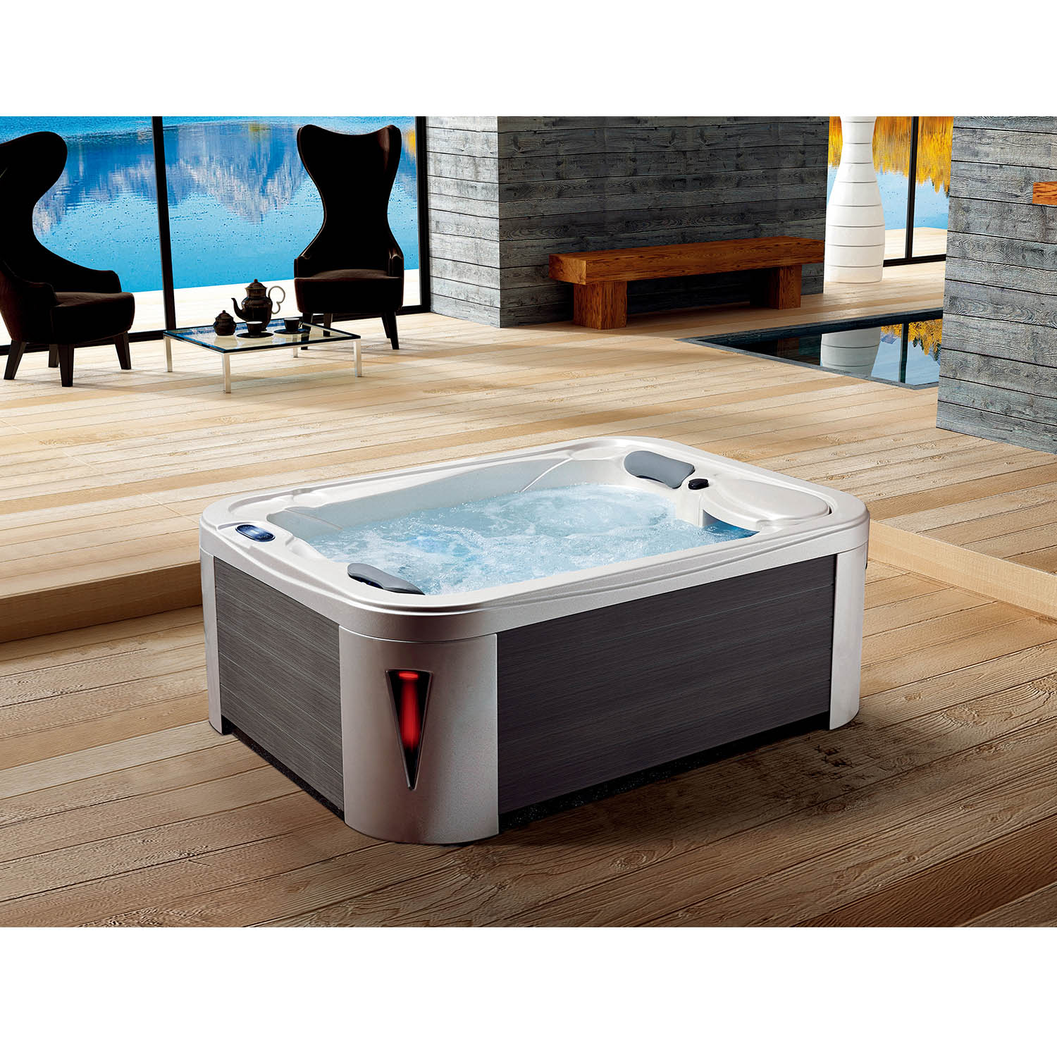 Высококачественная и модная система управления Joyonway, она имеет 3 режима: Стандартный, экономичный, спящий. Простая обшивка из алюминиевого пластика с приятными линиями. В спа бассейне серии E используется двухскоростной водяной насос с высокоскоростным режимом и низкоскоростным режимом, который подходит для взрослых и детей, удобен и безопасен. Он оснащен нагревателем мощностью 3 кВт, его можно нагреть до соответствующей температуры при использовании зимой. СПА Бассейн этой серии оснащен фильтром и озонатором, который может поддерживать чистоту и безопасность воды.
