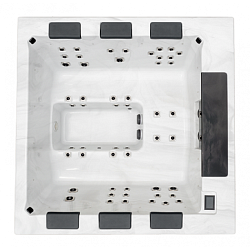 Встроенный озонатор обеспечивает гигиеническую чистоту воды в чаше и её не приходится часто менять. Благодаря оптимальной глубине чаши люди разного роста чувствует себя в бассейне максимально удобно. Такой бассейн прекрасно подходит для отдыха с семьей или в небольшой компании друзей.