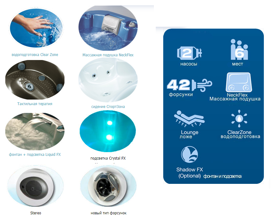 Dimension One Spas - джакузи для влюбленных. Эргономичные шезлонги для вас и вашей второй половины имеют регулируемые подголовники и обеспечивают идеальную поддержку тела. Пати-зона открывает широкий простор и для зажигательных вечеринок в компании друзей, и для волшебных сеансов наедине с близким человеком.