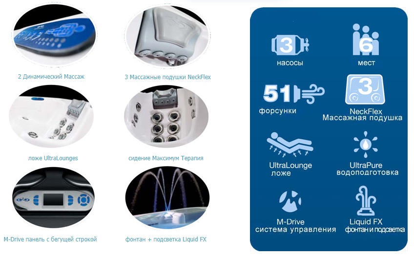 Dimension One Spas - джакузи для влюбленных. Эргономичные шезлонги для вас и вашей второй половины имеют регулируемые подголовники и обеспечивают идеальную поддержку тела. Пати-зона открывает широкий простор и для зажигательных вечеринок в компании друзей, и для волшебных сеансов наедине с близким человеком.