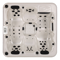 Для изделия таких размеров, в гидромассажном СПА-бассейне Ловиа Спа L509 установлено довольно много форсунок - 37 штуки. Через них вода и воздух направленно воздействуют на тело, производя желаемый гидромассажный эффект. Каждый пользователь может индивидуально регулировать силу потока.