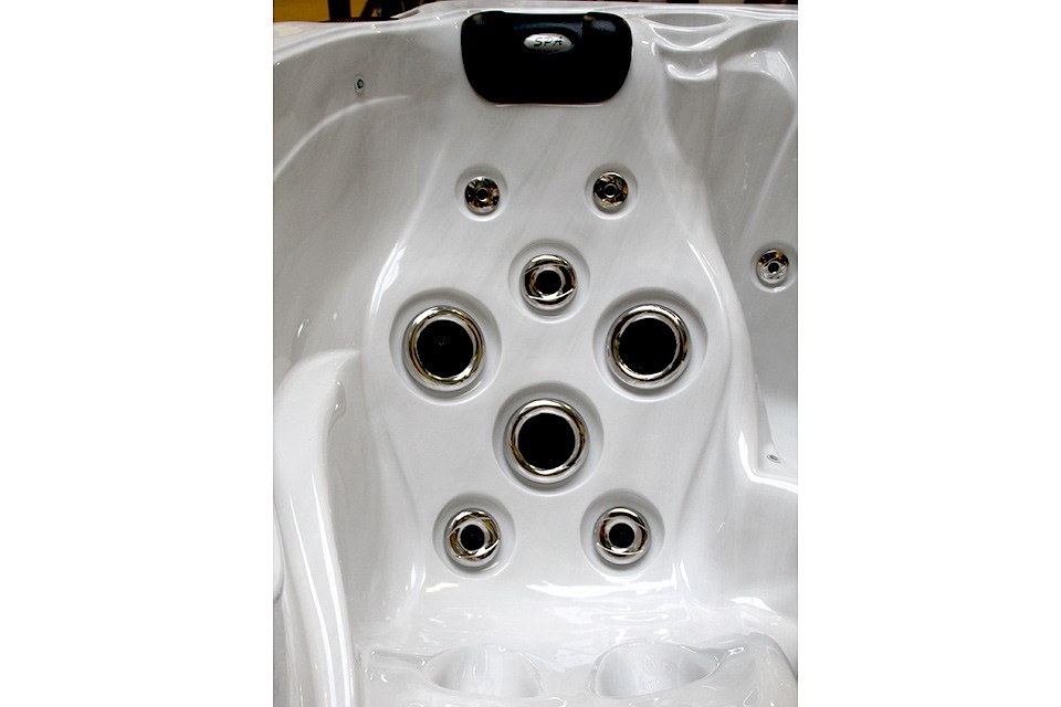 Бассейн SPA SOLACE оборудован 58 гидромассажными форсунками. Терапевтический и релаксирующий эффекты достигаются при помощи мягкого массажа циркулирующим воздухом, а также, специального энергичного спинного массажа Aqua Rolling Massage ™, расположенного в ковшеобразном сидении и выталкивающего воду вверх по поверхности спины.