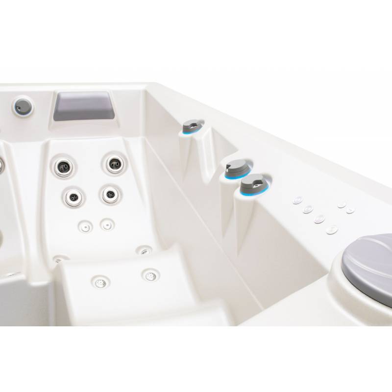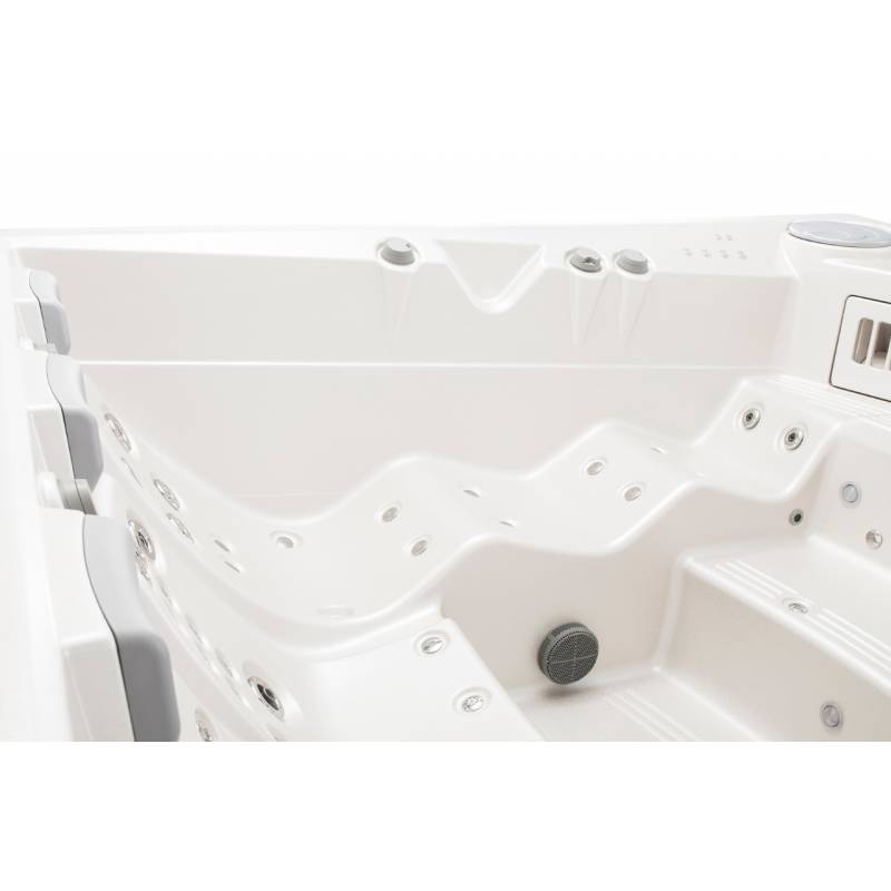 Рукоятка над противотоком - отличный инструмент для различных водных упражнений, будь то плавание против сильного течения или спокойное течение воды. По всей длине плавательный бассейн обрамлен фигурными ручками, которые в сочетании с противоскользящим покрытием дна обеспечивают безопасное перемещение внутри спа бассейна.