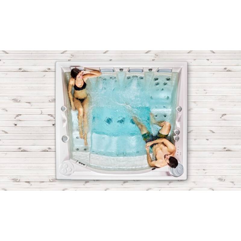 Доступ к бассейну осуществляется по ступенькам, на которых также можно удобно сидеть и лежать. Кроме того, они оснащены гидромассажными форсунками. Таким образом, настоящий плавательный спа-бассейн предлагает несколько вариантов базовой гидротерапии.