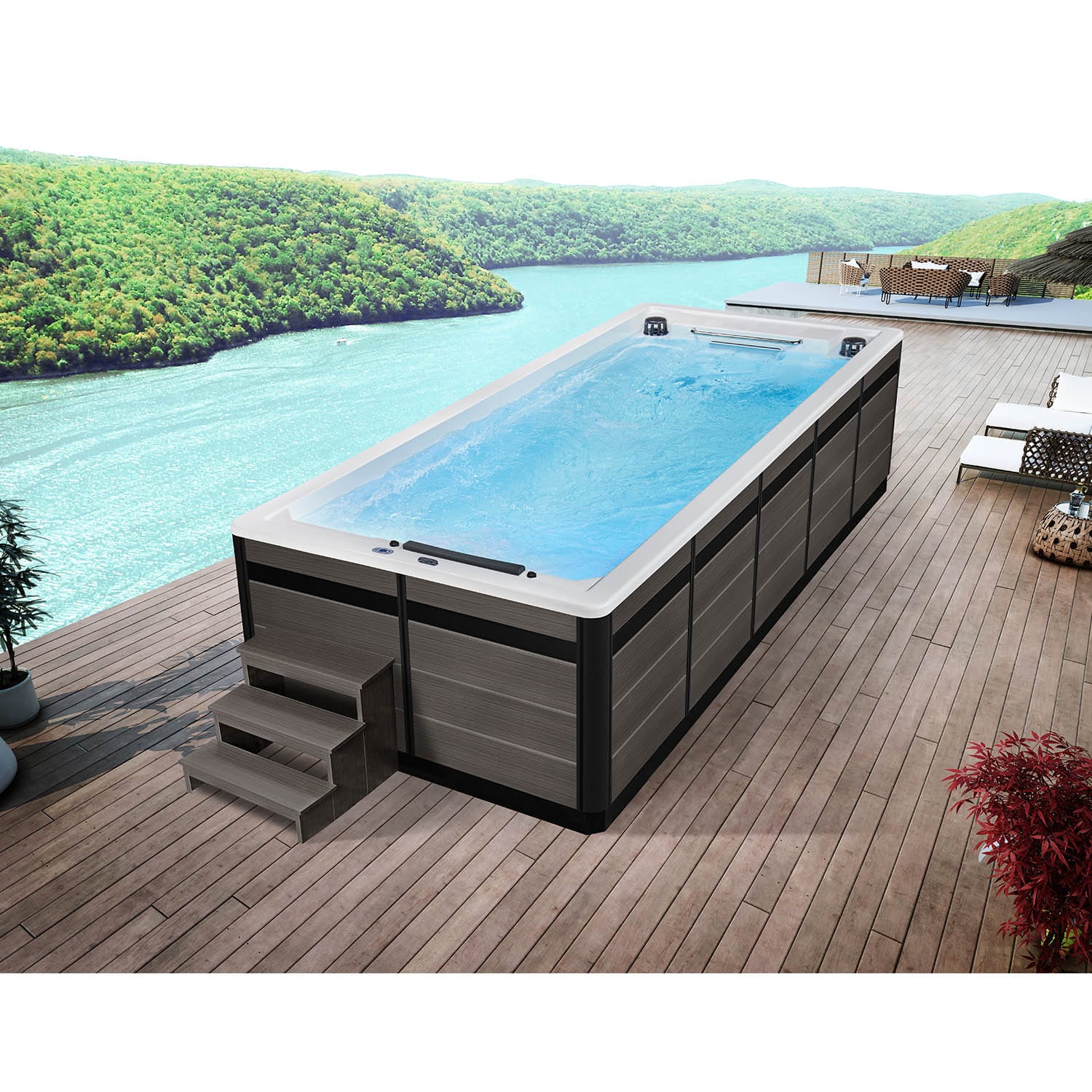 Данная модель бассейна компании Mexda имеет современное техническое оснащение, подходящее для наружной установки.