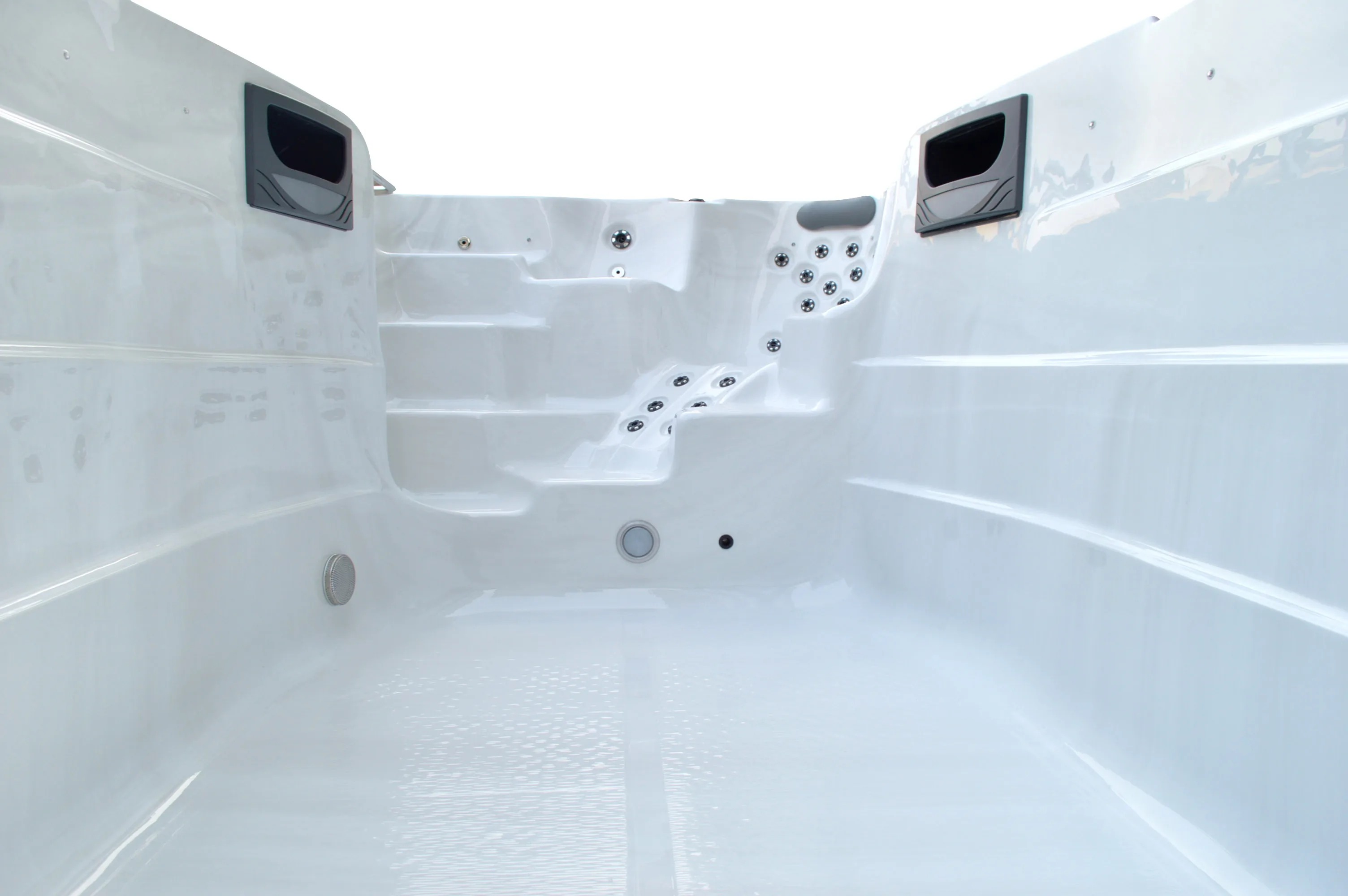 Это полностью готовое решение для тренировок и отдыха. Мощную систему гидромассажа, создающую невероятный комфорт в спа-зоне, обеспечивают 101 форсунка. Эффективный массаж и мощные водяные потоки создаются четырьмя производительными насосами: два насоса мощностью 2,2 кВт для спа-зоны, и два мощных насоса: 2,2 кВт и 2,9 кВт для плавательной зоны, что позволяет создать идеальное встречное течение для плавания.
