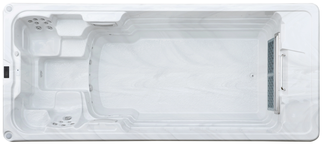 Helsinki Turbo оснащен высокопроизводительным пропеллерным насосом мощностью 6,5 кВт с 16 скоростными режимами, который создает мощный равномерный поток для комфортного плавания на месте. Дополнительный насос 1,5 кВт обеспечивает работу 18 массажных форсунок для эффективного восстановления после тренировок.
