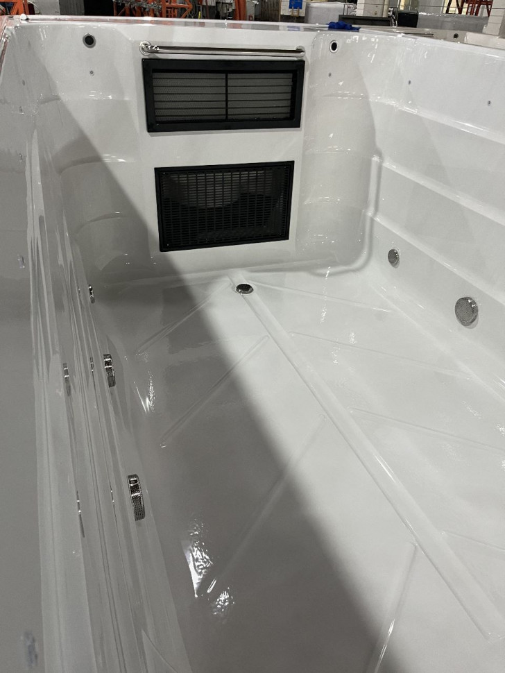 - Регулируемая система противотока мощностью 5 кВт создаёт мощные потоки для эффективных тренировок и плавания на месте.